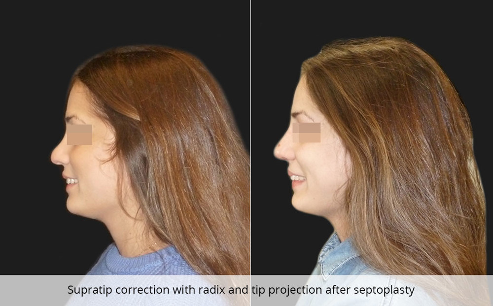 Αν τα ρουθούνια είναι μεγάλα, τα στενεύουμε με μικρά τμήματα που αφαιρούμε από την βάση της μύτης. Άλλες φορές, θα πρέπει να κάνουμε και διόρθωση στο πηγούνι για να έχουμε ένα ακόμη πιο ιρορροπημένο αποτέλεσμα. Οι τομές γίνονται στον βλεννογόνο της ρινός, το στενότερο σημείο της στυλίδας ή κάτω από το πηγούνι, χωρίς να φαίνονται. Επανάσταση αποτελεί τα τελευταία χρόνια η διόρθωση της μύτης με υαλουρονικό οξύ (medical rhinoplasty ή non surgical rhinoplasty) που διαρκεί πάνω από 2 χρόνια.