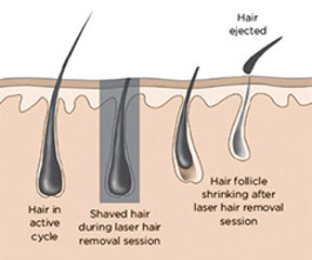 Eνας μικρός βραχίονας τοποθετείται επάνω στην επιδερμίδα, ξανά και ξανά ανάλογα με την περιοχή που θέλουμε να κάνουμε αποτρίχωση. Το μέγεθος της περιοχής καθορίζει και τον αριθμό των "παλμών" του laser. Κάθε παλμός του laser "απενεργοποιεί" ένα μεγάλο αριθμό τριχοθυλακίων. Αφαιρεί τις τρίχες ακόμη και αν δεν έχουν φθάσει την επιφάνεια του δέρματος ή "βγαίνουν" λοξά. Η έκφυση των θυλάκων γίνεται από το εν τω βάθει χόριο και το υποδόριο. Κάθε θύλακος πειέχει 2-3 στελέχη τριχών και έχει 3 φάσεις ανάπτυξης: την anagen που διαρκεί 3 χρόνια, την catagen, που διαρκεί 1-2 εβδομάδες και την telogen που διαρκεί 3-4 μήνες. Επειδή όλες οι τρίχες δεν βρίσκονται στην ίδια φάση ανάπτυξης απαιτούνται 6-8 συνεδρίες για την ολοκλήρωση της θεραπείας.