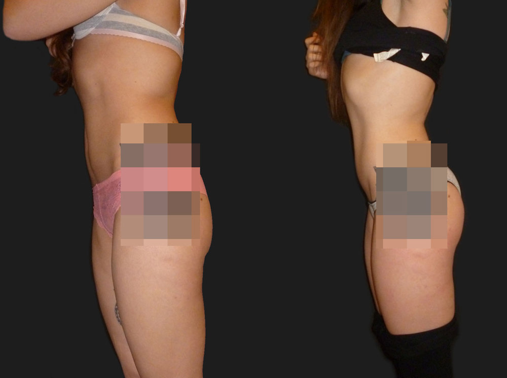But augmentation has amazing results when is combined by liposuction and lipofilling in certain areas of the body (Brazilian Butt Lift/BBL). When the patient has no fat at all, the silicone implants can give a nice shape to the buttocks.