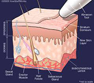 Microdermabration is effective in reducing fine lines, "crow's feet," age spots and acne scars. It stimulates the production of skin cells and collagen. It has proven to remove the dead cells from the skin and results in a gentle abrasion or "polishing" process.