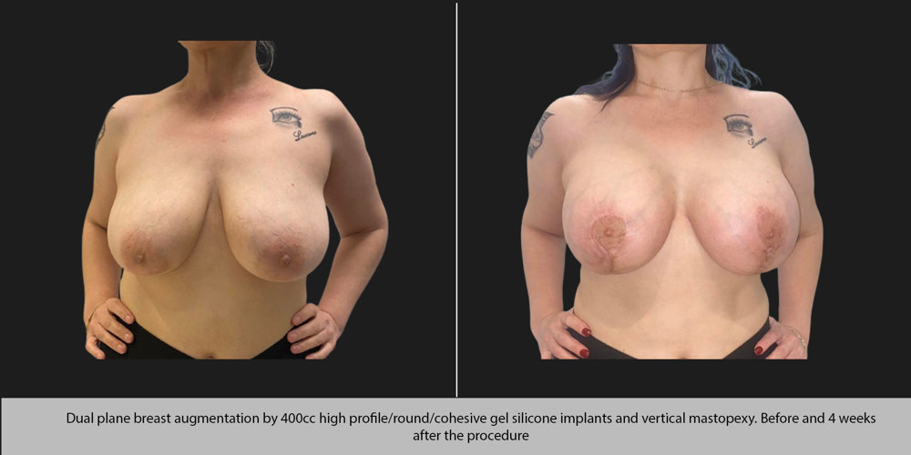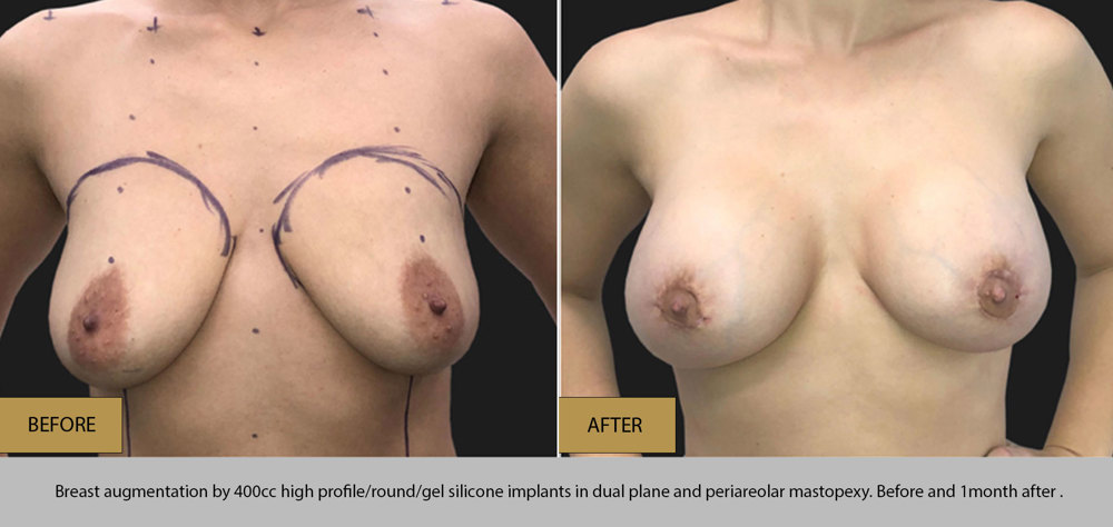 The usual method of lifting the breast uses 3 incisions: one around the areola, the second vertically from the bottom edge of the areola to the crease under the breast and the third along the natural curve of the breast crease but can be eliminated in certain cases. We will inform you which incisions are most appropriate for you. After excess skin is removed, the nipple and areola are moved to a higher position; when there is nipple inversion, we correct it with permanent results. Because the nipples and areolas remain attached to the breast tissue, sensation in this area is preserved most of the time, but numbness does occur occasionally.