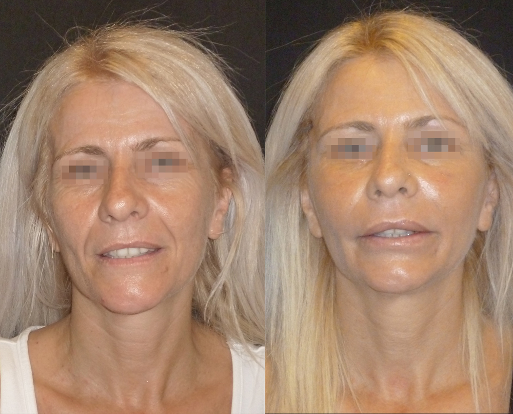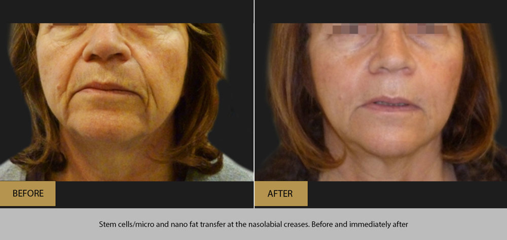 The last years more popularity gain the fat/stem cells: we take fat from the neck, the inner thighs or the abdomen, we liquify it through emulsification then we inject it around the face: the upper/lower lips, the upper/lower eyelids, around the mouth, the cheeks or the eyebrows. The face will be improved as well as the quality of the skin because of the adipose derived stem cells (ADSC).