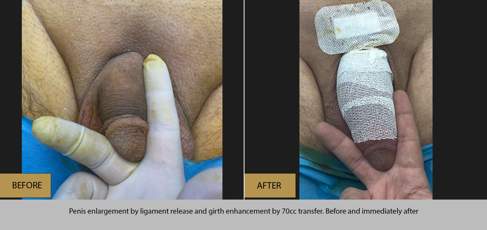 Finally, we perform penis enlargement/girth enhancement by lipofilling and release/excision of the suspensory ligament